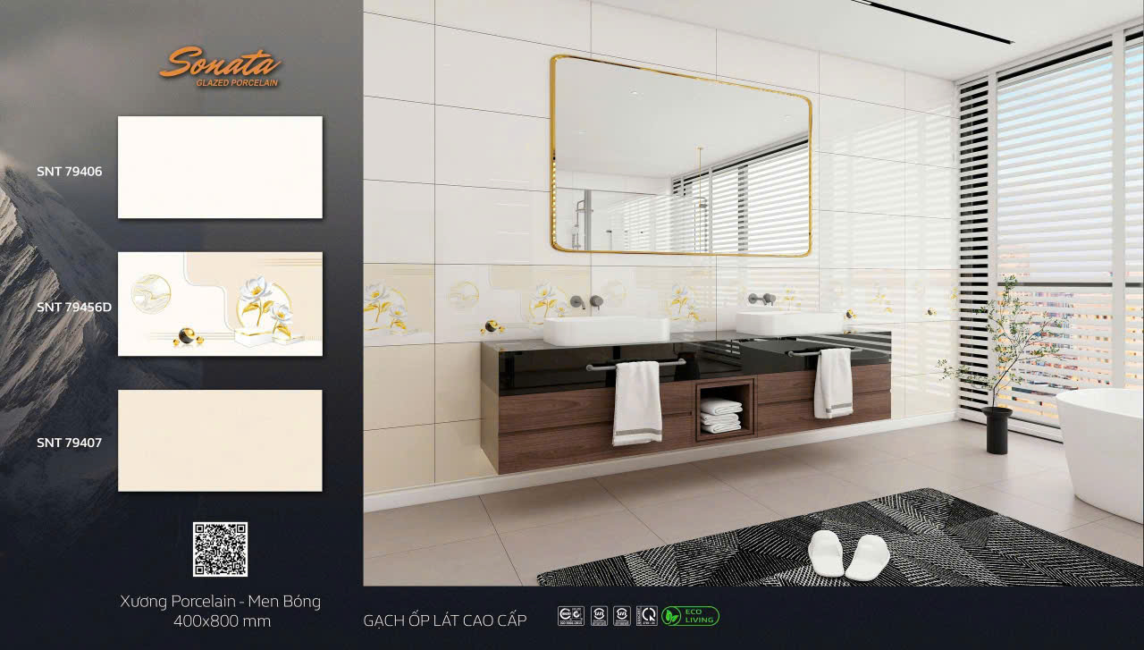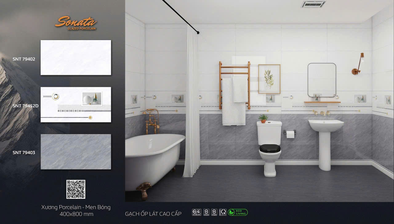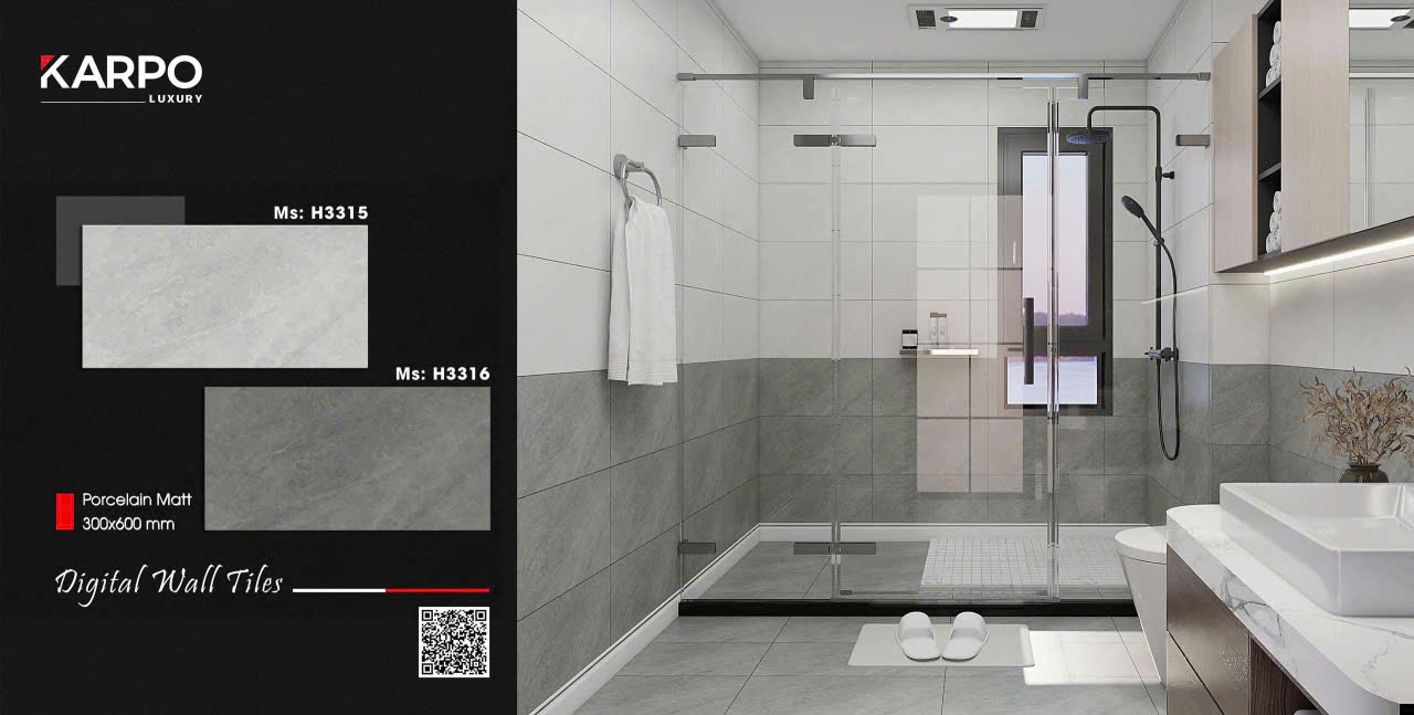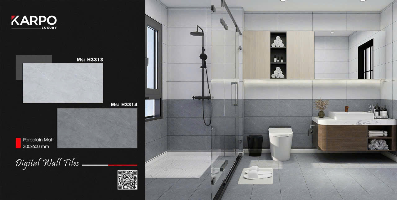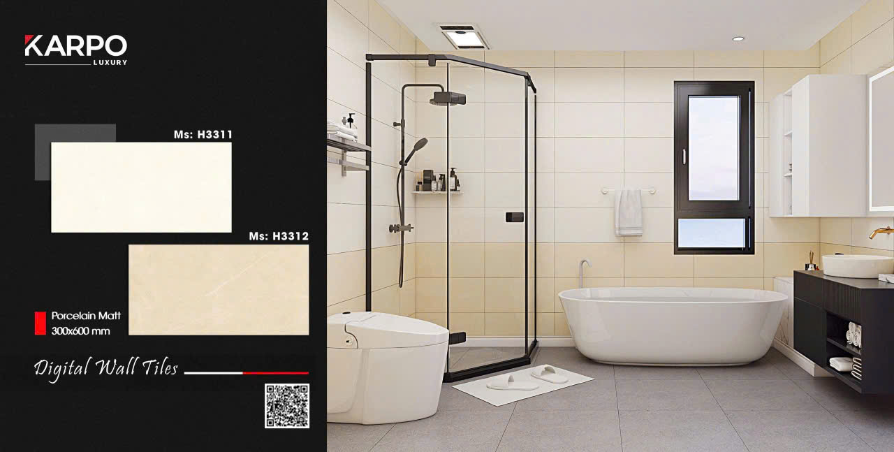 Đặc biệt, các dòng gạch ốp tường nhà tắm xương Porcelain với bề mặt men bóng hoặc men Matt đang được ứng dụng rộng rãi nhờ khả năng cân bằng giữa thẩm mỹ và độ bền trong môi trường ẩm.